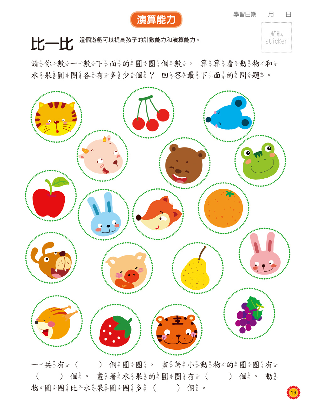 2、家長可依照孩子年齡或程度來指導孩子。各題標題上面標示出題目主要訓練的能力,便於家長挑選孩子較不足之處,加強訓練。