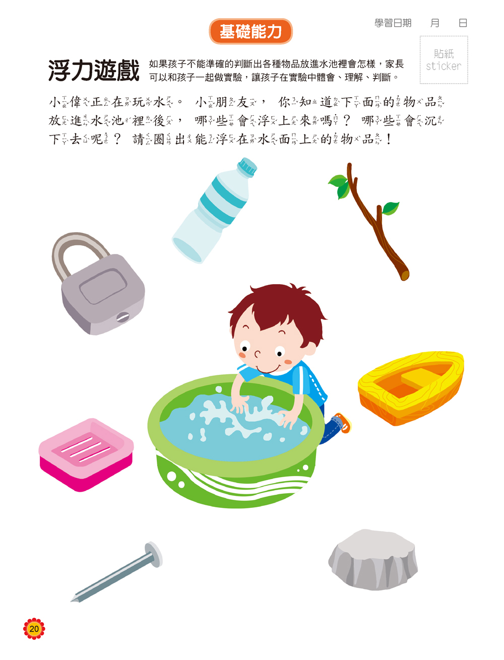 3、標題下方對開發能力與引導孩子的方式亦加以說明,供家長參考了解。書末附答案供參考,開放性的繪圖、記憶訓練等題目,建議家長陪同練習,無固定的答案。
